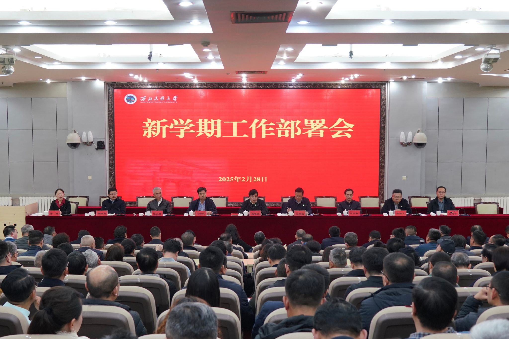 2月28日,学校在西北新村校区文津楼二楼学术报告厅召开新学期工作部署会,安排部署2025年重点工作,校党委书记张俊豪讲话,校党委副书记、校长王彦斌主持会议,全体校领导、全校副处级以上干部参加会议。