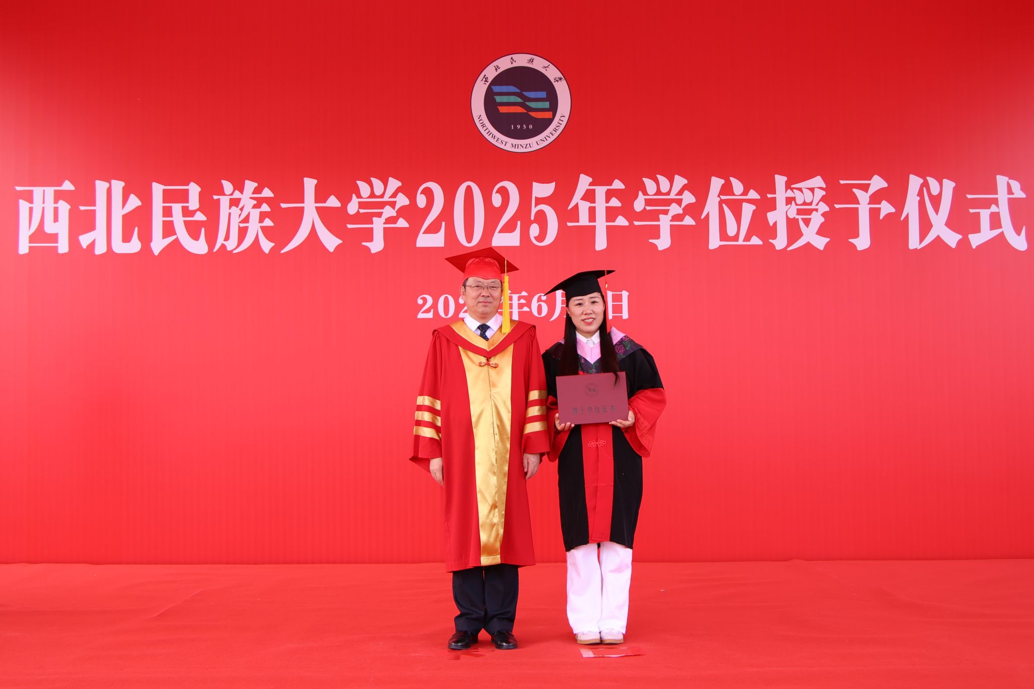 仪式上,校学位评定委员会副主席、党委常委、副校长王建华教授宣读毕业及学位授予决定;校领导为毕业生代表、甘肃省优秀毕业生代表颁发荣誉证书;毕业生代表、教师代表、校友代表、家长代表围绕成长故事、师生情谊、奋斗历程和家长心声依次发言,共同为2025届毕业生送上真挚祝福。